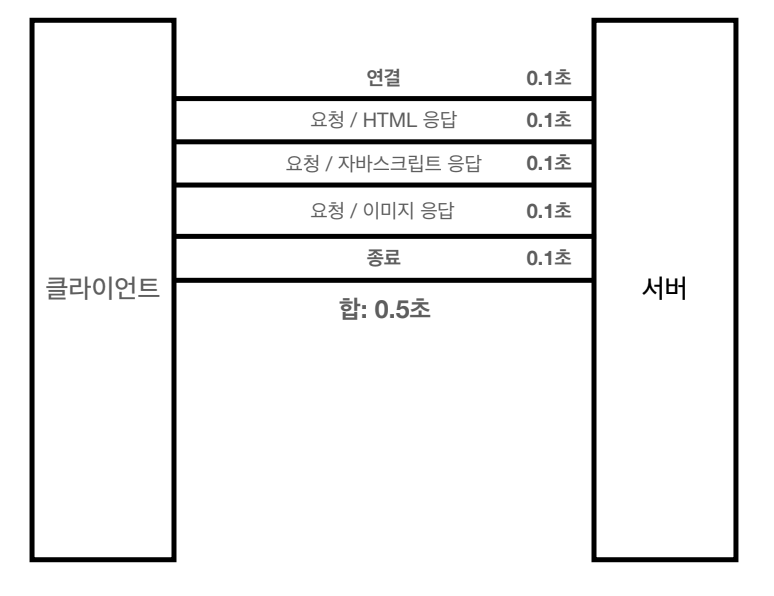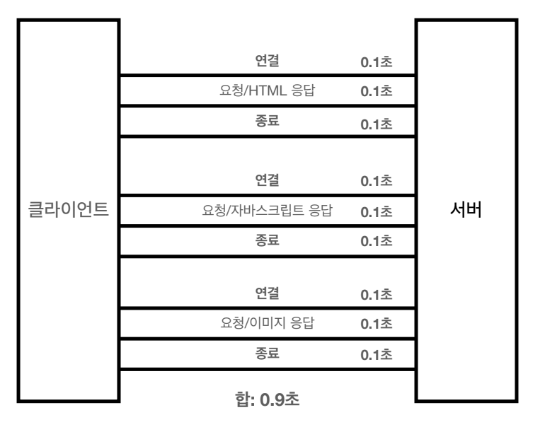 - 웹 브라우저로 사이트를 요청하면 HTML 뿐만 아니라 자바스크립트, css, 추가 이미지 등 등 수 많은 자원이 함께 다운로드 지금은 HTTP 지속 연결(Persistent Connections)로 문제 해결