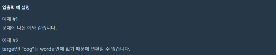 - 둘의 문자가 같거나, words 안에 target이 없으면 바로 return 0