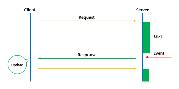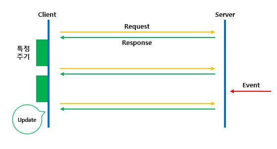 - 단점 : 요청과 응답이 여전히 1:1이라는 점에서 서버에 부하가 발생할 수 있음